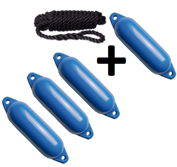 Aanbieding Cilinder fender 3+1 gratis + 4 fenderlijnen! Fender of stootwil type star blauw. Gemaakt bij Majoni, gemakkelijk opblaasbaar Ventiel is vervangbaar en met een adapter en een fietspomp op te pompen. Verkijgbaar in de kleuren wit, blauw, zwart, Navy, antraciet en zilver.