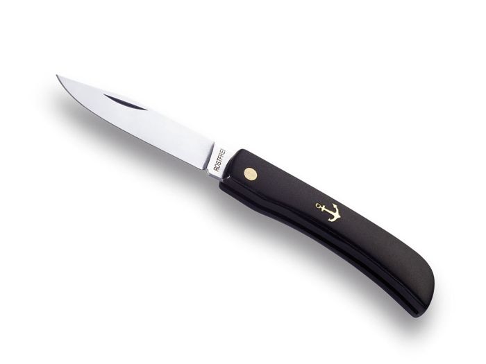 Een werkmes type anker met een RVS lemmet, het heft is gemaakt van kunststof