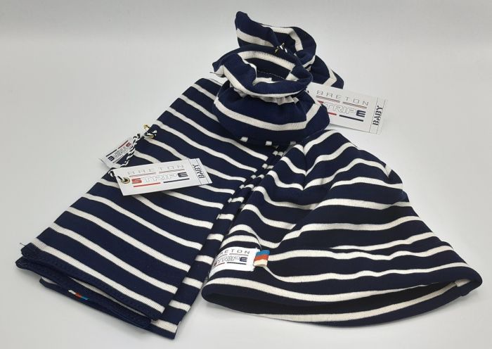 Baby sjaal, slofjes en een leuke muts. in de kleur navy natural.