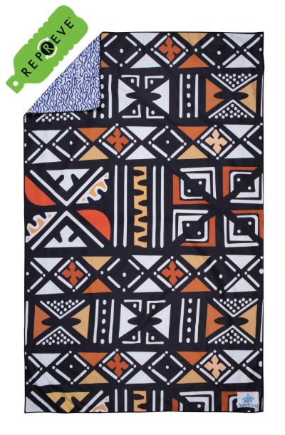 WAX reishanddoek (100x160 cm) met Afrikaanse print. Gemaakt van 20 gerecyclede plastic flessen, sneldrogend, zacht, lichtgewicht. Inclusief bijpassend zakje. Steun zeeschildpadden!