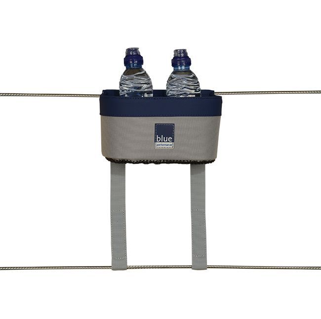 Bekerhouder zeereling Handige bekerhouder aan zeereling. stevig vastgemaakt zodat uw drankje er makkelijk uit gehaald kan worden. gemaakt van water, schimmel en UV bestendig materiaal. Voor twee blijkjes, flesjes of bekers. Ripstop materiaal, verstevings rond de opening en duurzaam. De bekerhouder is zelflozend Maat 18x10x9 cm (LxBxH)