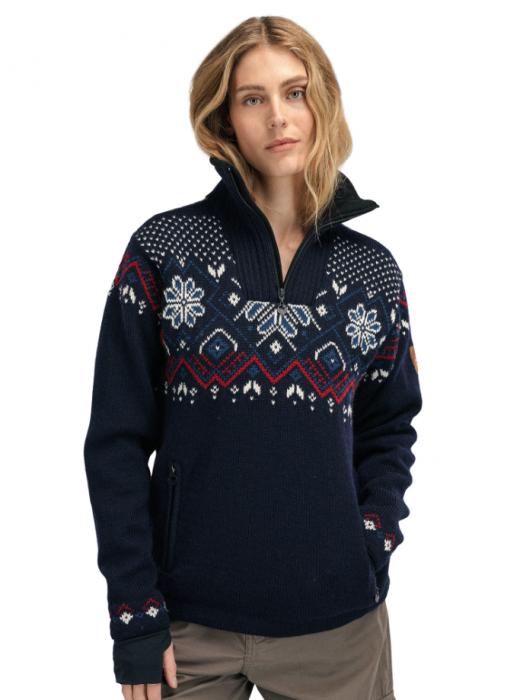 De Fongen WP dames Sweater is een sportieve en waterafstotende wollen trui van Dale of Norway die je het beste kunt dragen voor je vrijetijdsactiviteiten en winterwandelingen. Het jack is gemaakt van honderd procent wol en voelt daarom niet alleen heerlijk aan, maar is ook nog lekker warm. Bovendien is de trui ondanks de wol waterafstotend en ademend. Ook ideaal dus voor koude en natte winterdagen. De duimlussen zorgen bovendien voor veel comfort en houden je handen lekker warm. In de twee ritszakken aan de voorkant kun je bovendien een paar kleine spullen stoppen voor onderweg. De trui wordt afgemaakt met een traditioneel ontwerp, zodat fans van Dale of Norway direct zien waar de trui vandaan komt!