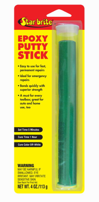Star brite Epoxy Putty Stick maakt nood- en permanente reparaties eenvoudig en snel. Het handkneedbare materiaal mengt zich in slechts één minuut en hecht op natte, vochtige en droge oppervlakken, waardoor het ideaal is voor bootreparaties, zwembaden en andere toepassingen, ook onder water.