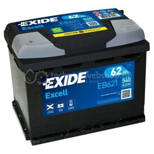 De EB620 wordt geproduceerd door Exide Technologies. Accu's uit de Excell-serie hebben een verbeterde levensduur en weerstand dankzij de 3DX rastertechnologie. De accu kan worden geïnstalleerd in auto's met standaarduitrusting. De afmetingen van de accu zijn 242 x 175 x 175 mm en de koude startstroom van de accu is 540A.