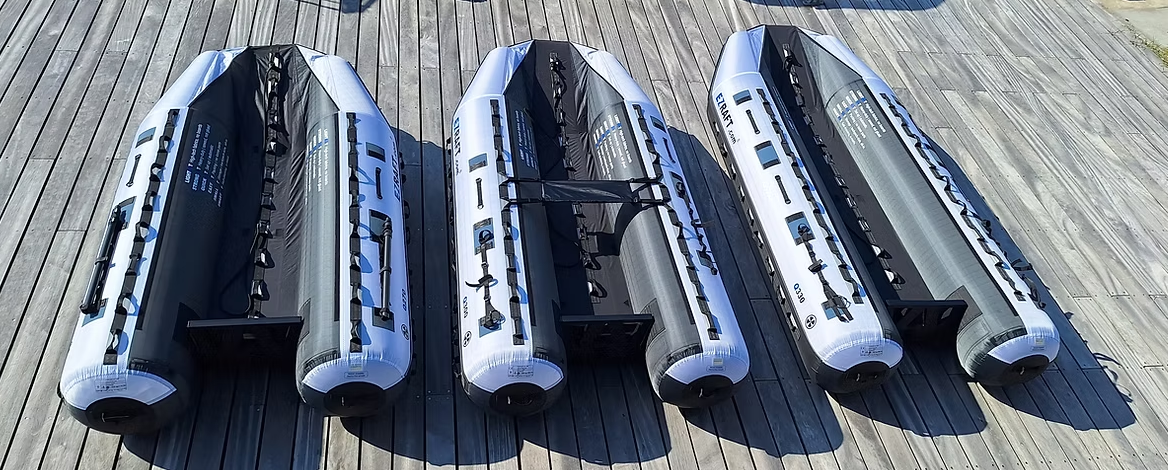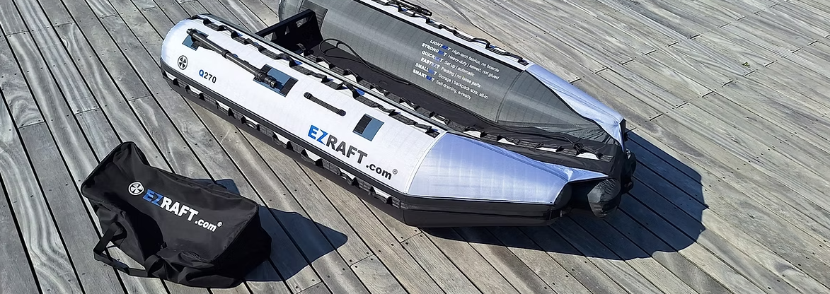 Zwaar uitgevoerdDraag meer Het slimme 'Quad-Maran'-ontwerp van onze Q-modellen zorgt voor een stabiele vaart op het water, terwijl de middenrompen een superieure drijfkracht bieden, waardoor u meer uitrusting en passagiers kunt meenemen. Bovendien hebben EZrafts sterke, gestikte buitenverbindingen , veel sterker dan gelijmde of gelaste verbindingen zoals bij traditionele opblaasboten. |