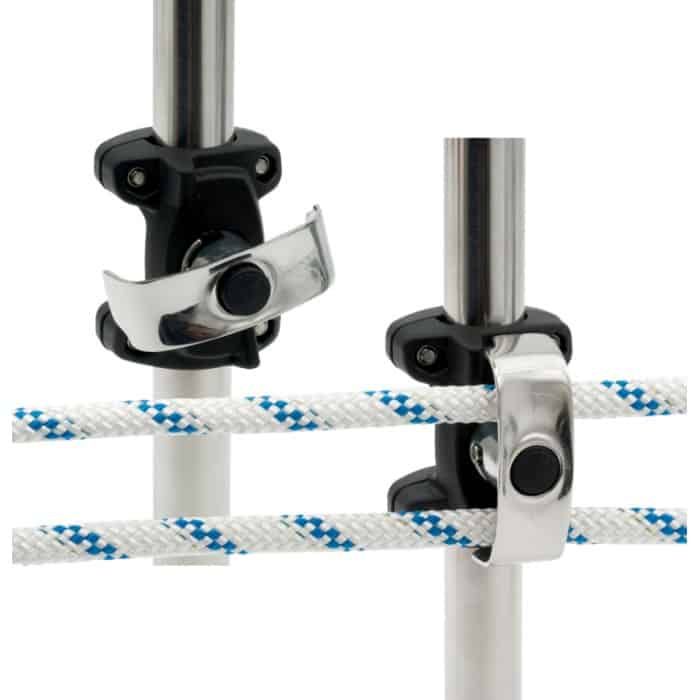 Doormiddel van "push en twist" kan men de RVS beugel openen om de lijnen er doorheen te laten lopen. Heeft een zeer lage weerstand met geleiden.