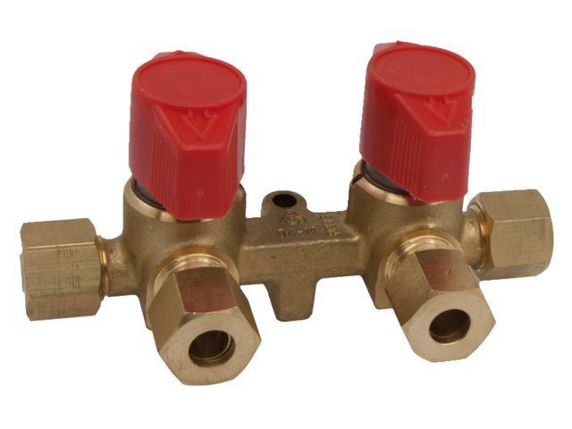 Dubbele gaskraan.Aansluitingen 8mm knelfitting