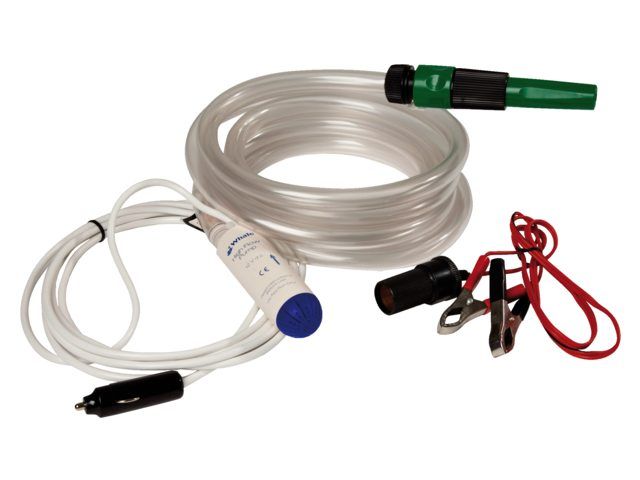 Deze draagbare pompset is ideaal voor gebruik aan boord, in de caravan of bij noodgevallen. De set bevat een krachtige High Flow dompelpomp, een 3,75 meter slang, een waterspuit, accuklemmen en een stekker voor sigarettenaansteker. Het pomphuis is vervaardigd uit stevig ABS-materiaal. Let op: deze pompen mogen niet drooglopen.