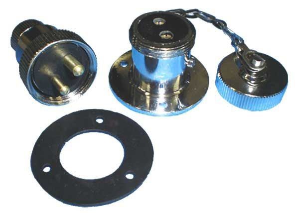 Jachtstopcontact, 3A continue2-polig compleet met dopflensdiameter 36mm diameter 20mm hoogte 55mm messingverchroomd