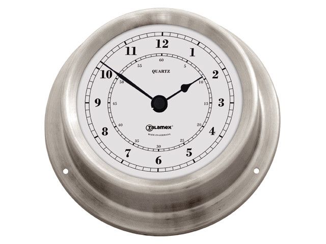 Boordklok, een Scheepsinstrument in een mooie roestvrijstalen kast.