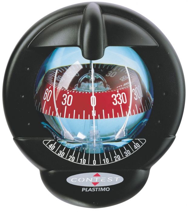 Dit Plastimo contest 101 kompas is zowel binnen als buiten afleesbaar door de dubbele schotmontage. Voor zeil- en motorboten van 8 tot 12m. De roos heeft een schijnbare diameter van 100mm met een dubbele gradenverdeling van 5° en drie zeilstrepen.