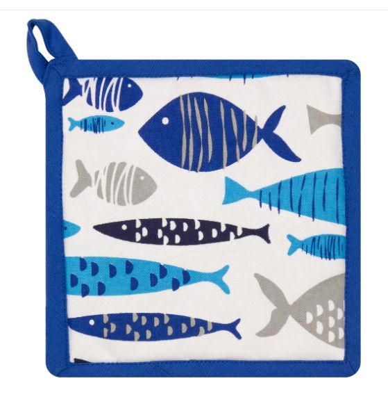 Nautische pannenlap of onderzetter met visjes-printOff-white met blauw tinten
