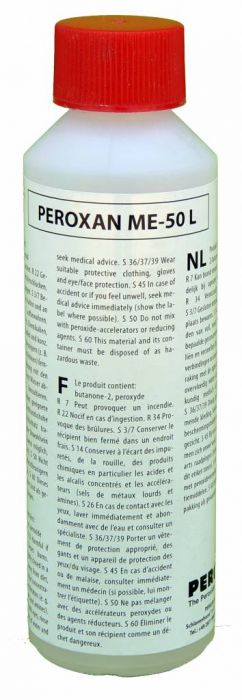 PeroxanVoor het uitharden van met cobalt versnelde polyester harsen, gelcoats en topcoatsKan bij vinylharsen schuimvorming geven en een langzamere doorharding
