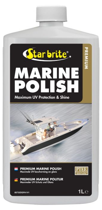 Star Brite Premium Marine Polish Star brite Premium Marine Polish levert een schitterende, duurzame en spiegelachtige glans, terwijl het optimale bescherming biedt tegen UV-stralen, zout en oxidatie. Ideaal voor polyester, metaal, plexiglas en geschilderde oppervlakken van boten, jachten, jetski’s en andere watersportuitrusting.