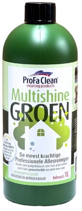 Multishine Groen is een zeer krachtige allesreiniger en ontvetter voor het schoonmaken en daarmee onderhouden van uw Huis, Schuur, Bedrijfspand en nog veel meer!