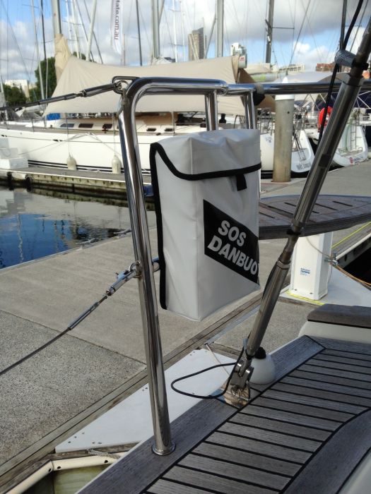 In het geval er een Man Over Boord situatie voordoet; open eenvoudig de houder, haal de SOS Marine DanBuoy uit de houder en gooi de DanBuoy overboord in de richting van de drenkeling. De DanBuoy blaast zich automatisch op bij contact met water.