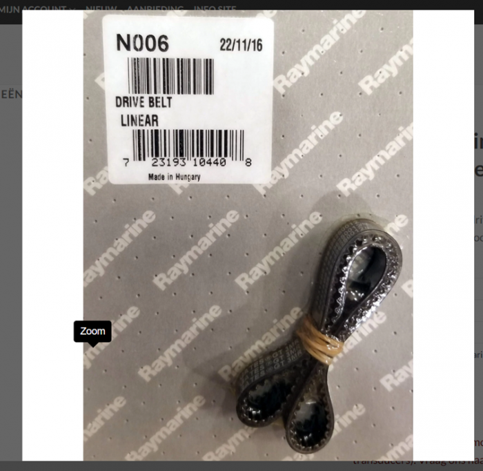Raymarine Linear Drive drive getande riem, snaar of belt. Deze riem zorgt er voor dat de elektromotor het wormwiel aandrijft.