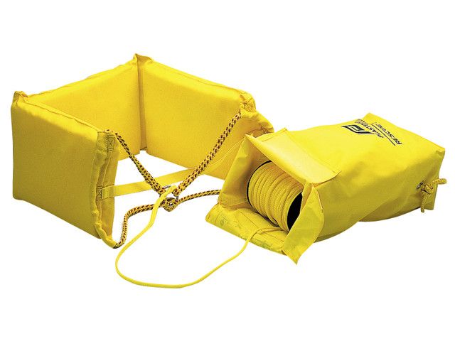 Plastimo recuesling, compleet in gele tas.Deze Plastimo rescue sling met drijvende bergings-lus is speciaal voor de man-over-boord manoeuvre! Het geheel zit in een compacte, opvallend gele PVC tas.Met 40 m reddingslijn en lussen voor bevestiging aan de reling.
