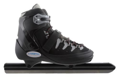 Schoen De Zandstra semi soft schoen (Low Heel). Deze combineert een zeer laag gewicht met veel comfort. De schoen geeft steun op die plaatsen waar het nodig is. Vermoeidheid en blaren behoren tot het verleden. Sluiting door combinatie van veter, gesp en velcro strap. Zeer comfortabele schoen voor het lange afstandswerk. Schaats De traditionale stalen buis is vervangen door een aluminium buis met RVS gereedschapstaal blad (Toolsteel). De hardheid is 60Rc. Dit betekent veel langer scherp. De dikte is 1.25. Hierdoor uitermate geschikt voor zowel kunst- als natuurijs. Ronding 25 Meter Maten 39 - 47