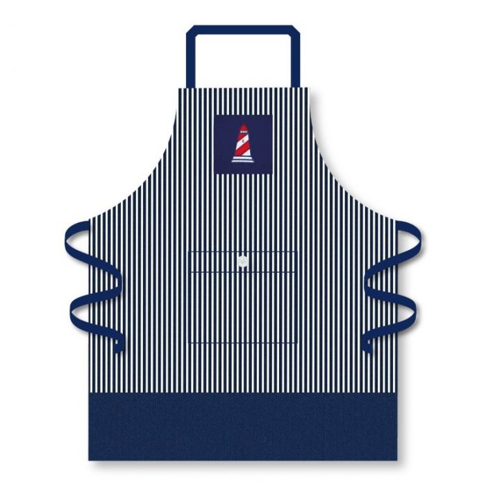 Schort met vuurtoren marinestreep/rood, 68x87cm