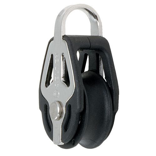 Selden Enkelschijfsblokéénschijfs blok 20mm met oogideaal voor een vlaglijn of ander doeleindeRVS en extra versterkt kunststof met RVS kogellagers,maximale lijndikte 6 mm.SWL 150 Kg