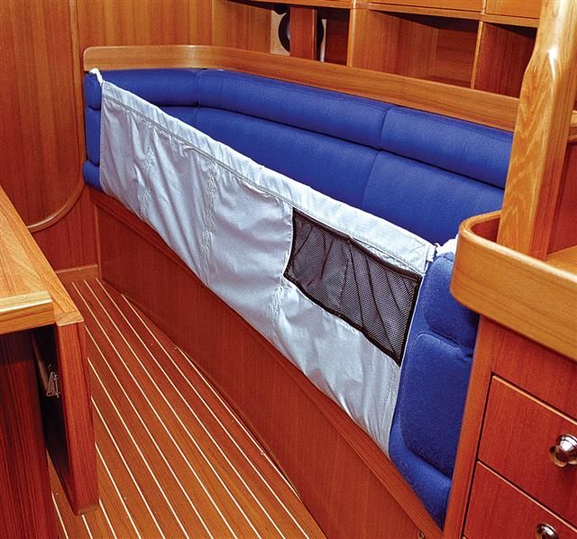 Slingerzeil Een degelijk "bunknet" of slingerzeil om tijdens het zeilen in de kooi te blijven. En als u het daar niet voor gebruikt staat u er versteld van hoeveel opbergruimte er mee wordt gecreeërd. Maar ook een speelhoek voor de kinderen. Lengte 170 cm, hoogte 90 cm.
