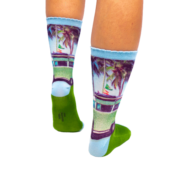 Surfplank erop, bikini mee en niet te vergeten, de meest toepasselijke sokken in de koffer! Hoe mooi is het om je outfit af te stemmen op hetgeen waar je van droomt? Deze Sock my camper sokken zorgen voor de beste rit in jouw leven, daar heb je geen camper voor nodig!