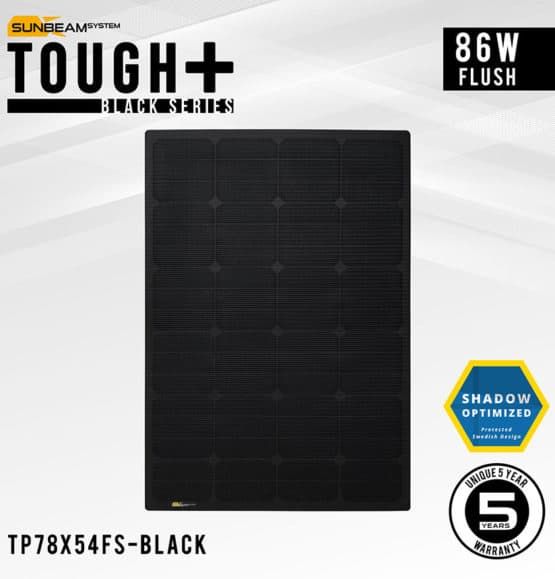 Deze Black-serie is ontwikkeld om dekoppervlakken te voorzien van een egale, op elkaar aansluitende, laag met zwarte zonnepanelen. Deze Flush-uitvoering geeft na installatie een volledig vlak paneel zonder stekkerdoosje, de platte kabel is aan de achterkant onzichtbaar weg te werken.