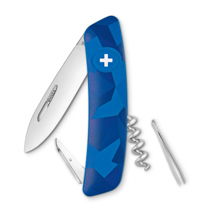 Swiza zakmes C01 Livor Blauw – modern Zwitsers zakmes met 6 functies, veiligheidsvergrendeling en ergonomisch design. Compact, betrouwbaar en vaatwasserbestendig.