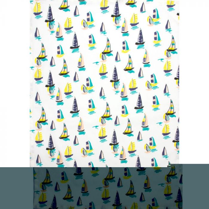 Theedoek met zeilbotenGedurfde nautische en kustprints geven deze gecoördineerde reeks keukentextiel een fijn zeegevoel.Gemaakt van 100% katoen, maat 71x51cm.