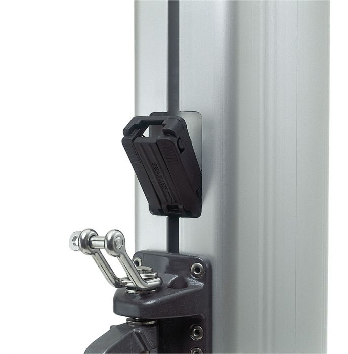 Track gate Selden 505-510-01 De Track Gate is ontworpen voor gebruik met de MDS-auto's of met conventionele zeilgeleiders. Bij gebruik met MDS-auto's verwijdert u eenvoudigweg de track gate bij het installeren of verwijderen van de karren. Bij gebruik met conventionele gelijders dient u het veerbelaste middengedeelte van de track gate te gebruiken.