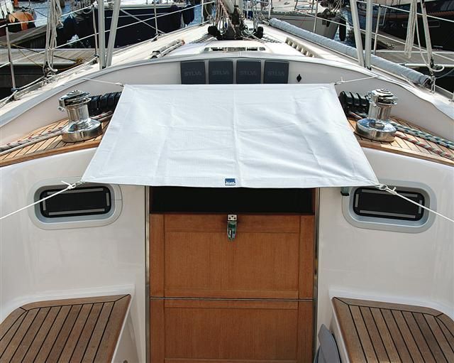 Zeiltje universeelUniversele hoes wat over de ingang van de kajuit of boven een luik kan worden gespannen of waar je maar wiltHandig tegen zon en regen of inkijk.Maat 90x90cm met ogen