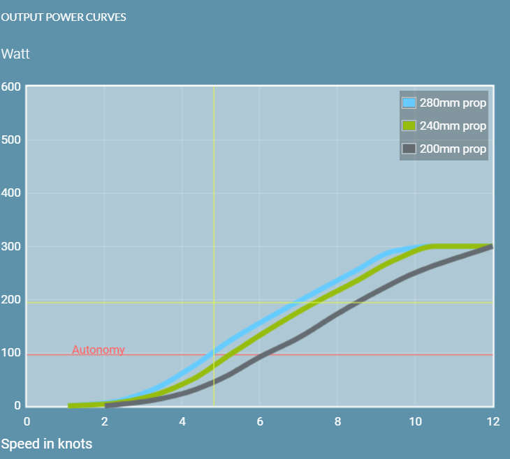 De standaard meegeleverde 240 mm propeller is perfect voor algemeen gebruik en wekt 8 Ampère op bij 5 knopen.
